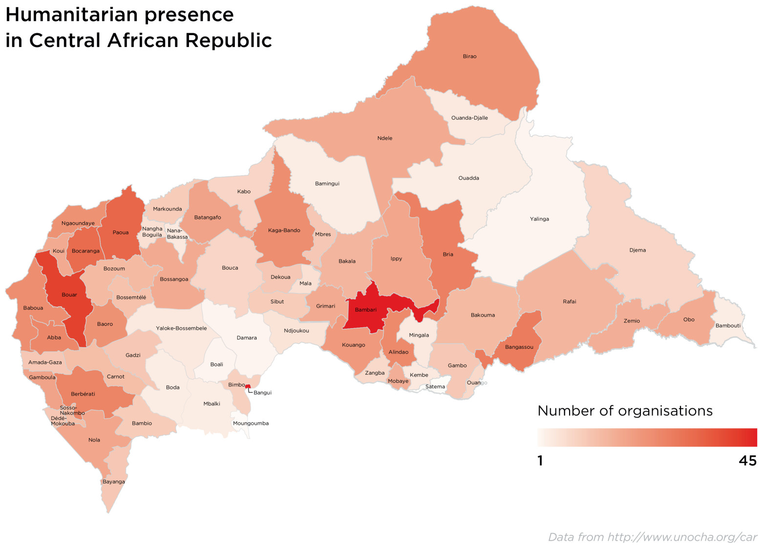 • The aid presence is static or shrinking in most areas