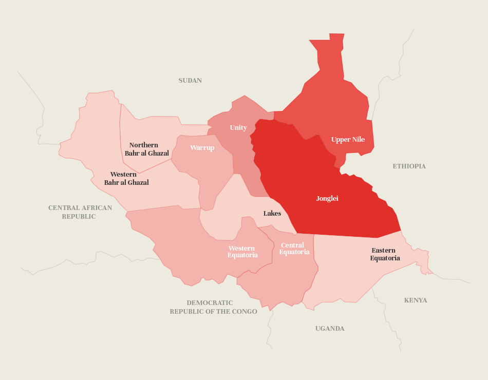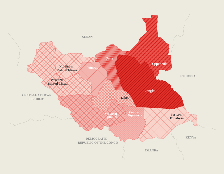 The outbreak of civil war in South Sudan in late 2013 led to intense fighting and atrocities committed against civilians in the Greater Upper Nile states of the north. Battle lines and outbreaks of fighting have been fluid and unpredictable. Attacks on aid workers have been largely ethnically motivated, affecting national staff.